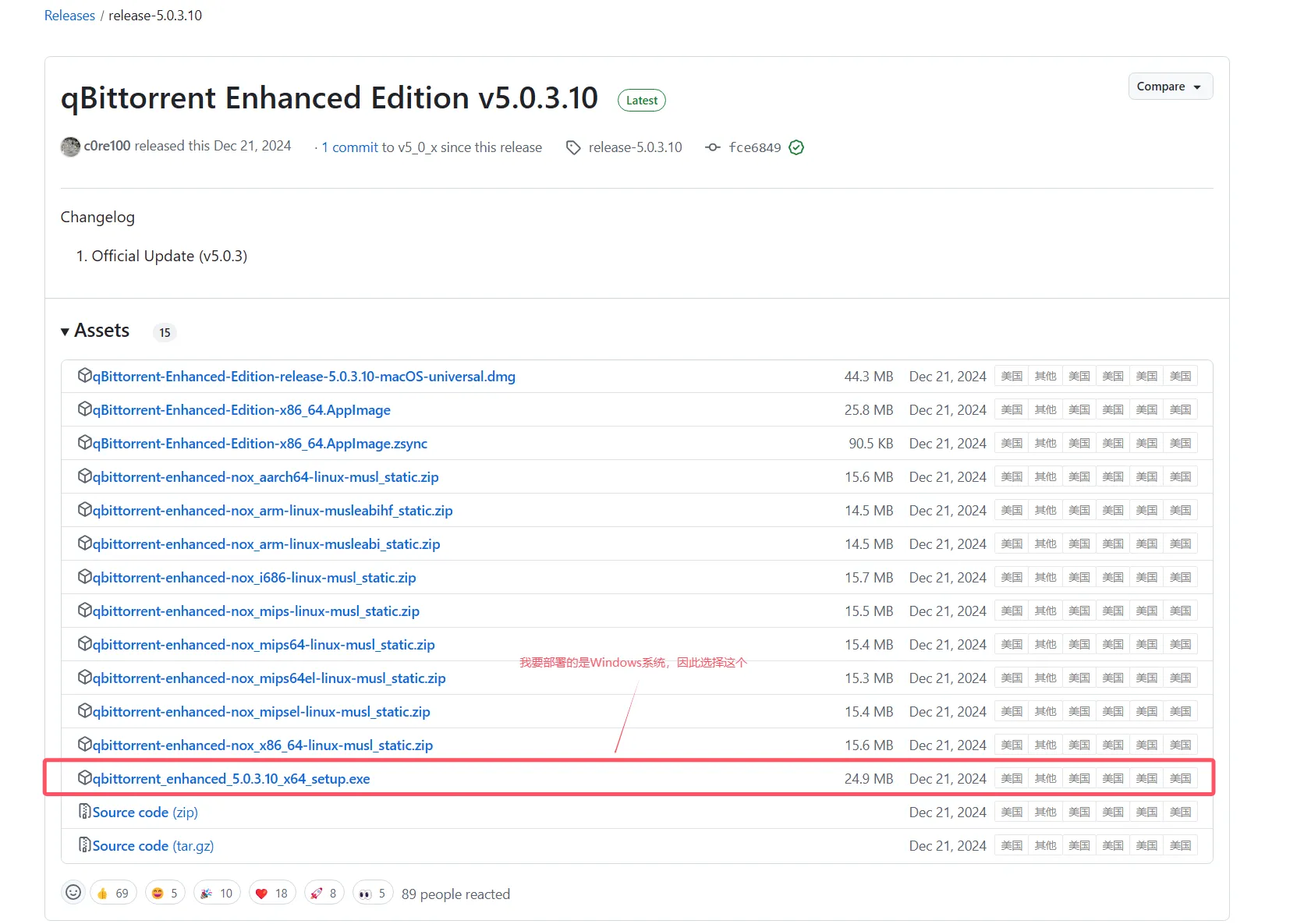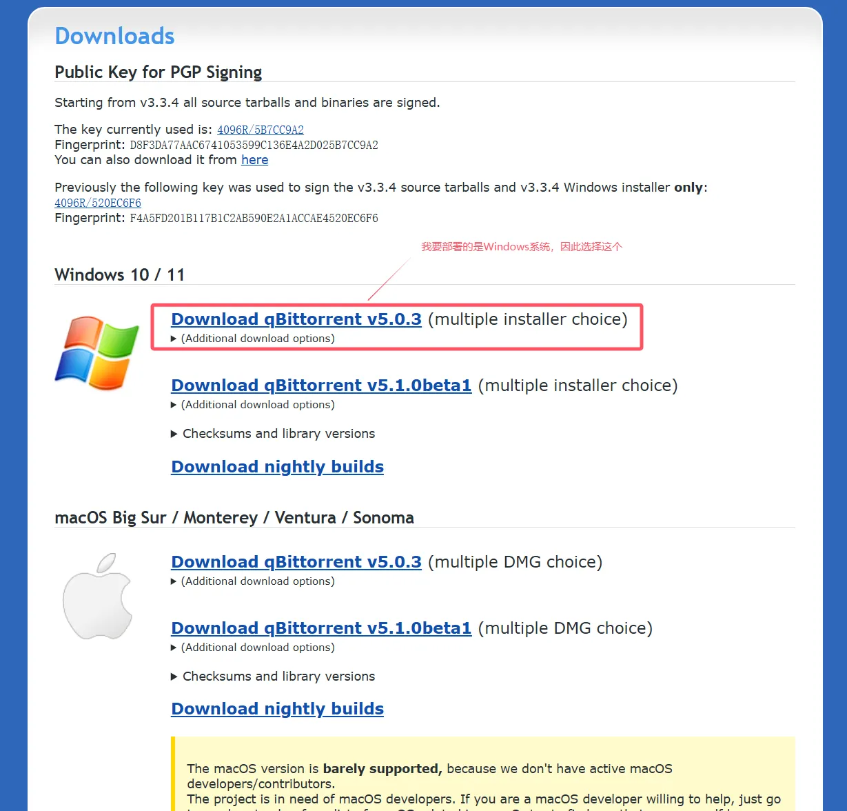 以qbittorrent举例,我们进入到qbittorrent的下载地址,下载到合适系统的最新版本(图一是官方版本,图二是增强版)。