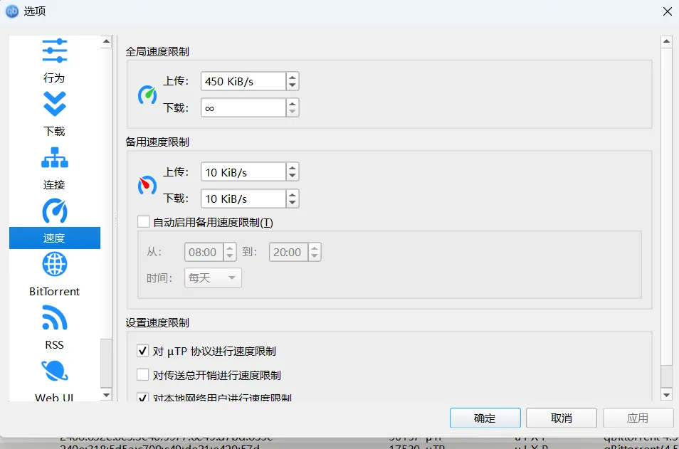 这是因为国内现在三大运营商对于打击pcdn都非常严厉,而pcdn的一个特征就是上传量非常大;bt的一大特点就是人人为我,我为人人,如果我们不进行限速,很容易被别人疯狂从你这里下载东西从而导致上传量过大,然后导致家里的宽带被运营商一刀切然后废了,因此最好设置一个合理的上传限速以免超标。个人建议一天的上传量不要超过80g会比较保险。这些都是针对家庭宽带,企业、专线等宽带另算。
