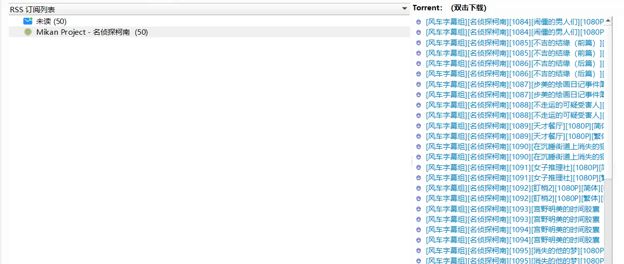 就会转跳到一个新的页面,我们把该页面的链接复制粘贴的qbittorrent中,即可成功完成订阅。我们双击右边的项目即可进行下载。