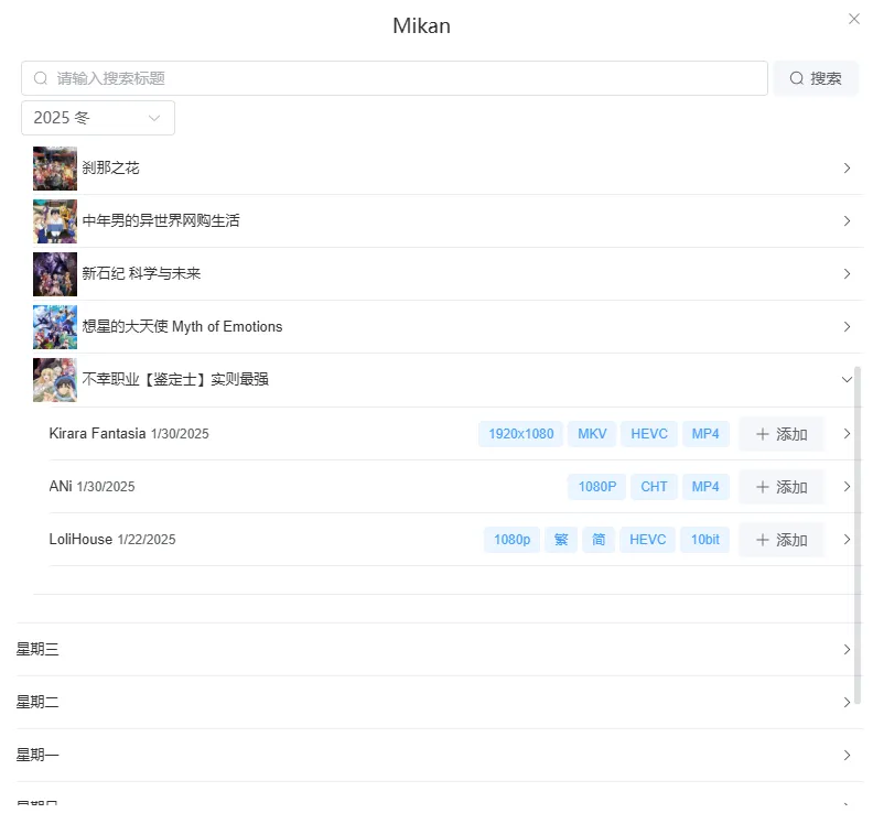 我们点击添加,选择一个合适的字幕组进行订阅。