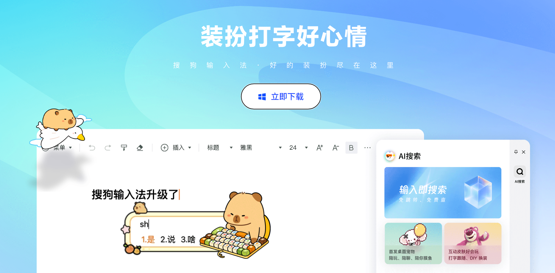 我第一个想起的便是学生时代用的输入法:搜狗输入法——这玩意在公司的不少电脑上都列装了。旧时光或许是给它蒙上了一层美好的滤镜,以至于我直接重进官网下载,而没有去搜索它现在的风评。