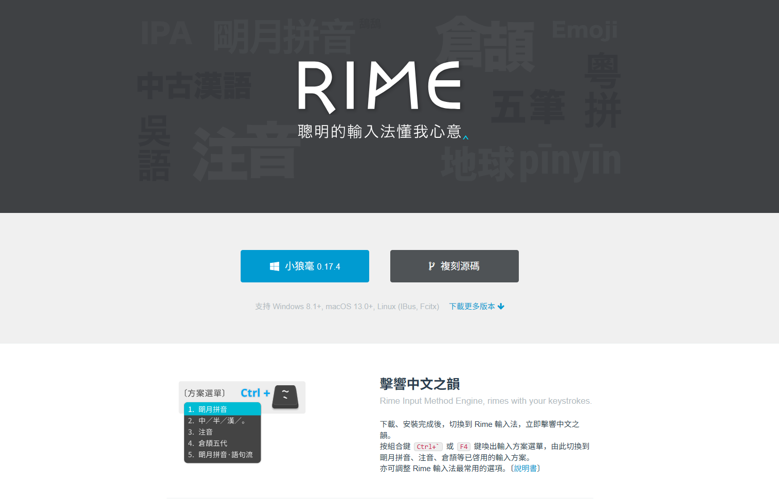 在b站搜索输入法推荐的时候,无意中看到这样一款输入法:它开源免费,简洁无广告,而且还有着相当强大的自定义功能,是一个纯粹的输入法软件,它就是**RIME | 中州韻輸入法引擎**。‘