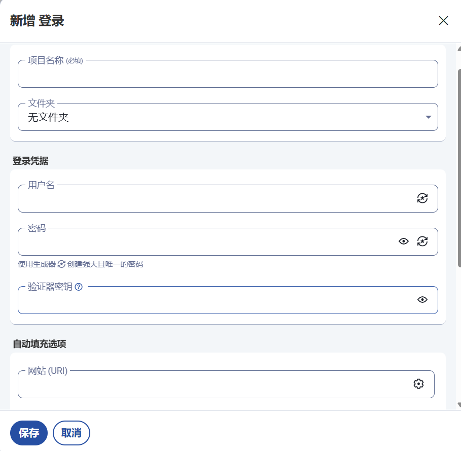 页面非常直白,一步一步照着填即可。网站可以多选,理论上你可以将各种不同网站但都是同一套账号密码存放在同一个项目里,不过都搭建密码库了,我相信大家还是不会做这种浪费时间和金钱的事。
