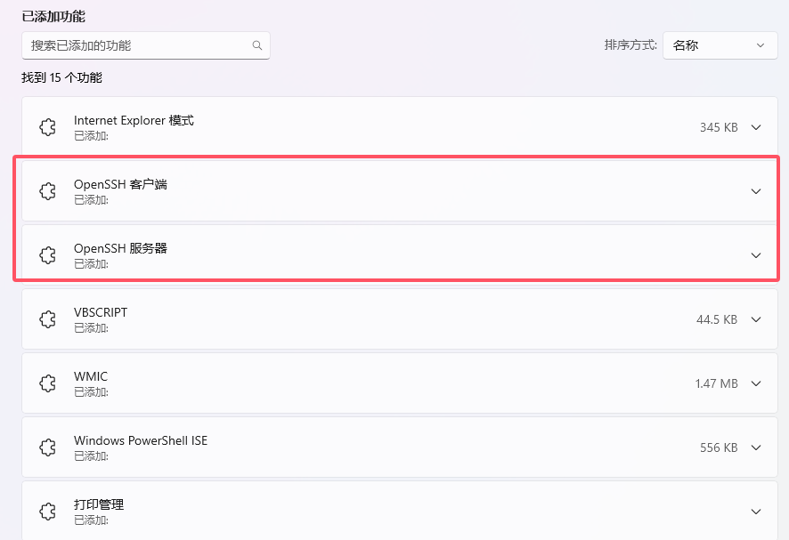对于关机而言,我们需要额外设置一番。Windows端最好是安装并启用openssh。