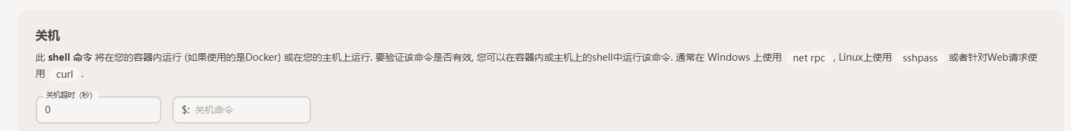 设置完成以后,我们回到upsnap,在关机指令中输入sshpass -p "你的电脑密码" ssh -o "StrictHostKeyChecking=no" 你的电脑账号@电脑局域网ip "shutdown /s /t 0 /f"